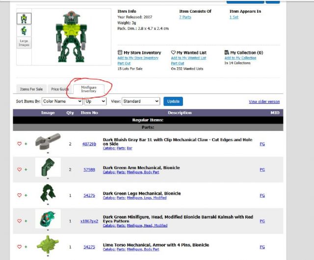 list them. For example, the Toa Hordika figure (https://www.bricklink.com/catalogList.asp?catType=M&catString=273.670)