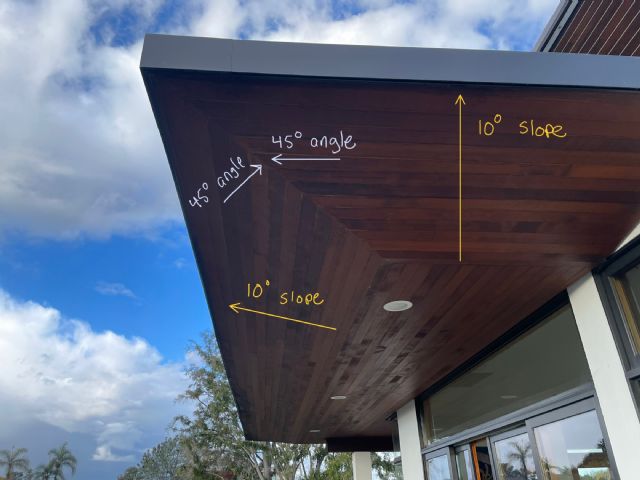I am trying to build the eaves on this house. Each side has a 10° upward slope