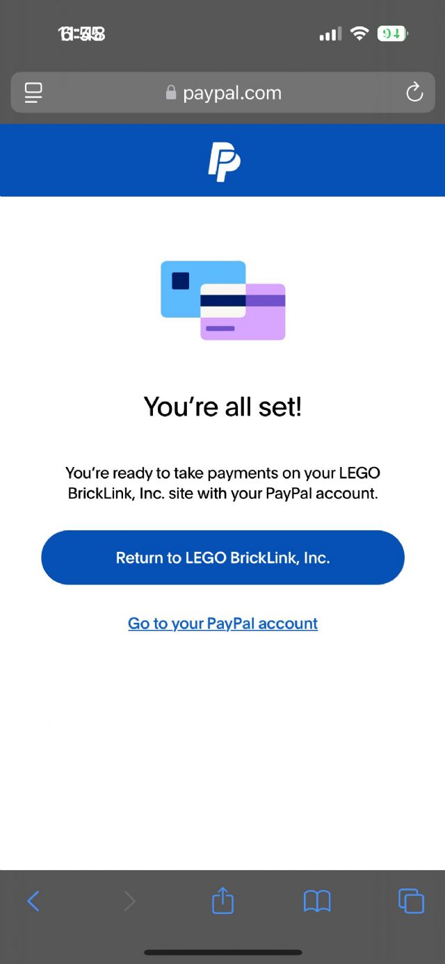 Thank you for the response. I double checked to make sure Bricklink had paypal
