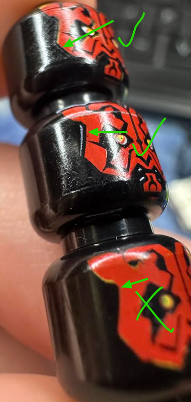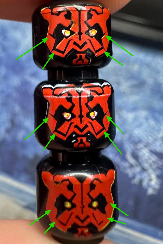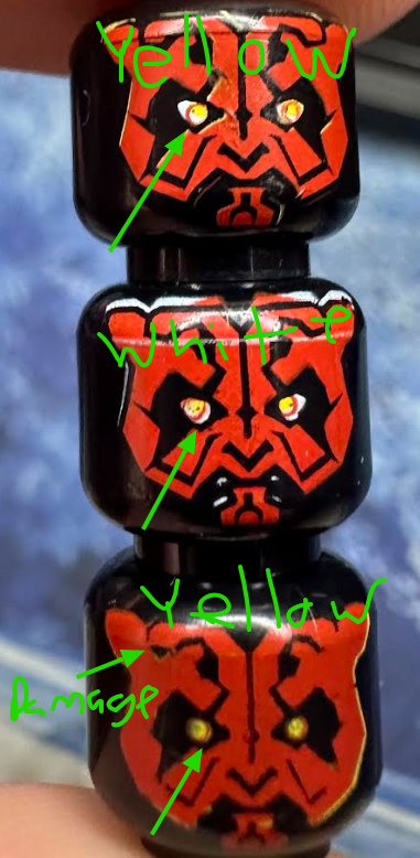 3 - (bottom image) yellow print under red with no eye lines