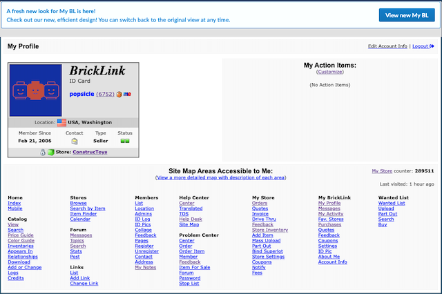We still use the “My BrickLink” or “My Profile” as our BL landing page (as have