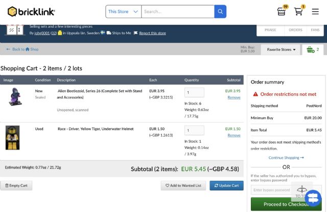 Well, it shows “€5.00” in the header. I put a €4 minifig in the cart and the