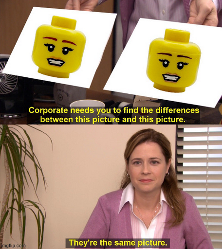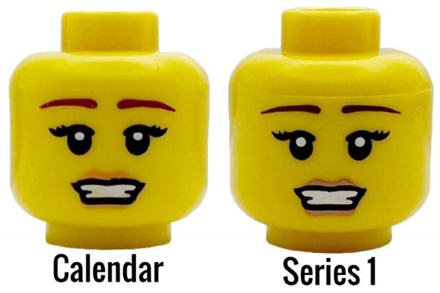 on a cmf rather then just your standard lego element, also lip color difference