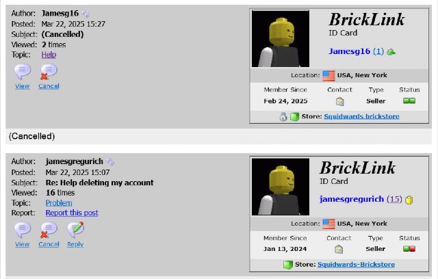 the parts of bricklink needed to delete this account due to the Gmail it’s under