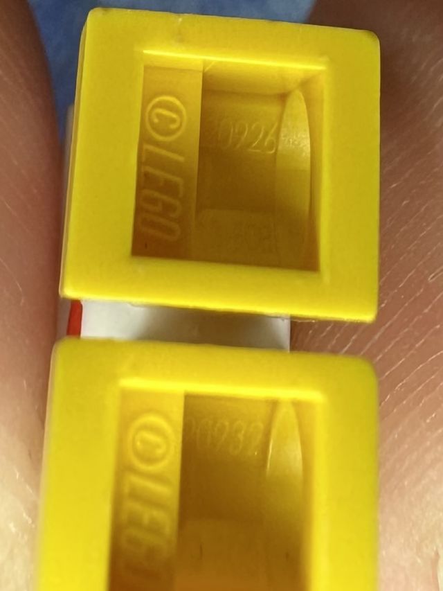 Hips and Legs with Molded Yellow Lower Legs / Boots and Printed Red Minifigure Head Silhouettes on Shorts Pattern