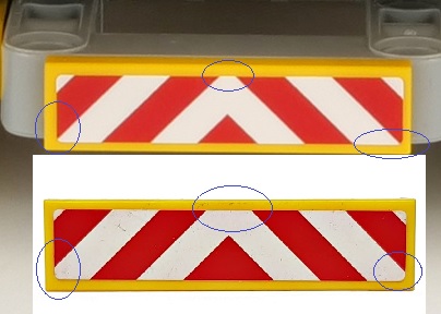* Add 1 Part 2431pb0404 Yellow Tile 1 x 4 with Red and White Chevron Danger Stripes Thick, Red in Middle Pattern (Sticker) - Sets 60022 / 60183 (Counterpart)