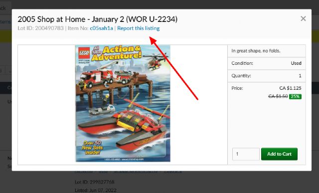 How do i report lot 431645982 which is an incomplete minifigure and not allowed?