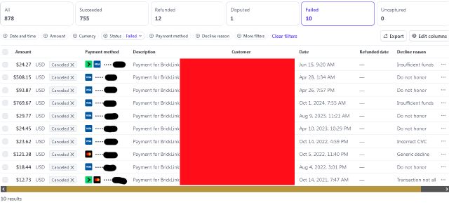 The nice thing about stripe is the dashboard. They show you exactly why a transaction