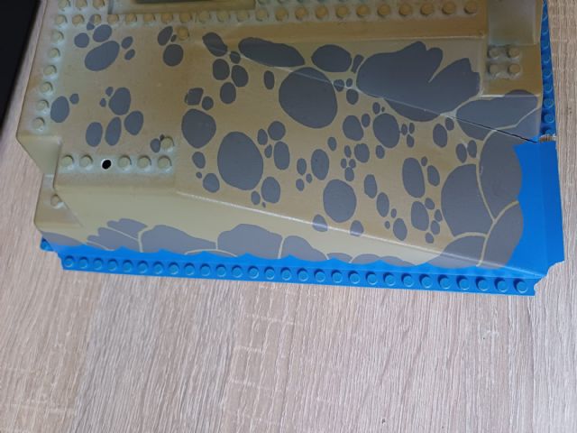 2) The baseplate is quite damaged with 2 corners broken off, discoloration and