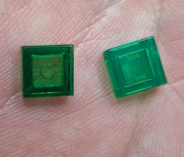 to BL they dont make a Trans Dark Green 1x1 Tile. They also are both with groove.