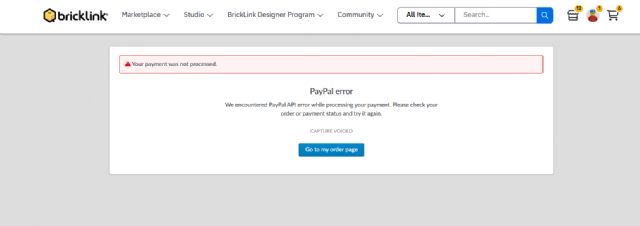 Reconnecting the seller's PayPal account to the Bricklink account didn't