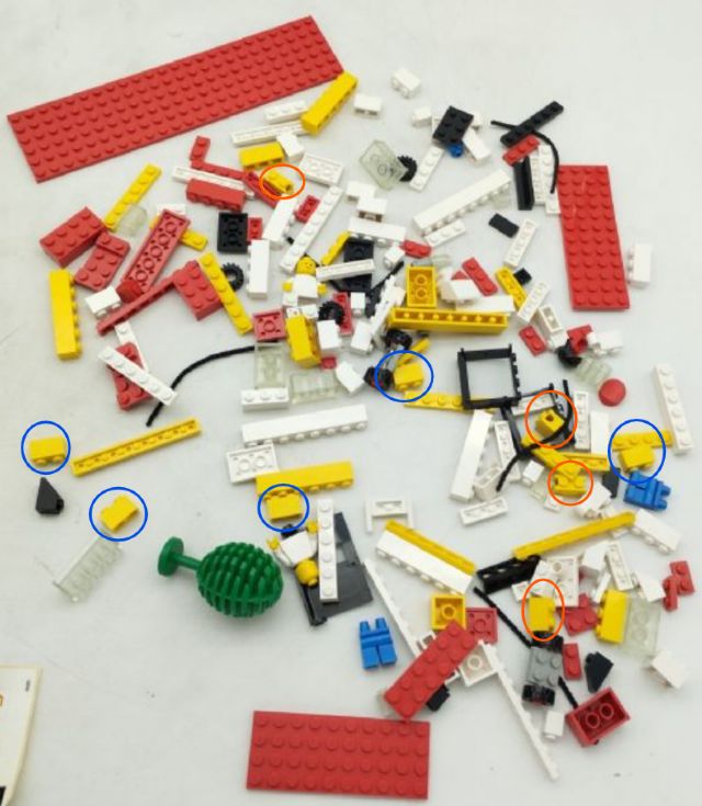 There are three extra yellow brick 1x2 and one extra white plate 1x6. I think