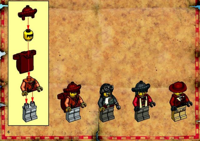 The following minfigure currently is pictured and listed as having dark gray legs. This is not how he came in the box or according to the original instructions. He should have the light gray legs that were included in the set. Similarly bricklink has minfigure adv032 featuring light gray legs when clearly the instructions have him with the dark gray legs. I believe somewhere down the line a mix up occurred and thus request that they are both switched back to the original versions seen in the set.