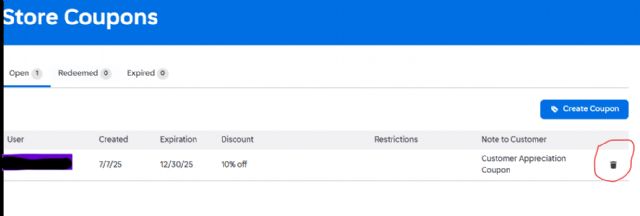 And we should be able to delete coupons issued to us as mentioned...