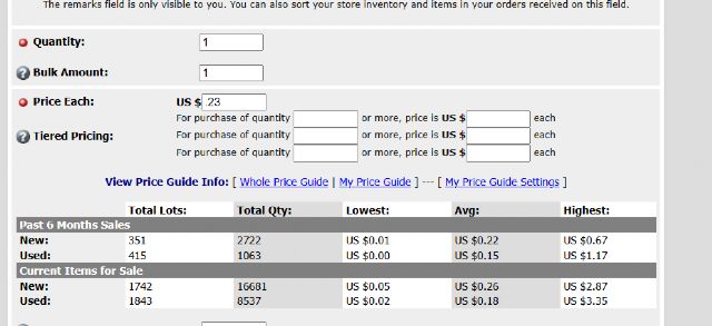inventory and look at that price guide on the listing form it is different??