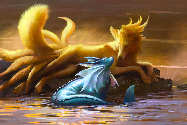 This beautiful piece incorporates Ninetales, one of my favorites.
