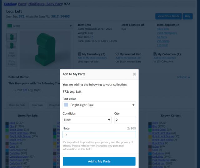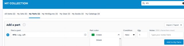 I am inventorying my black pieces and I have some legs. I entered 972 and the