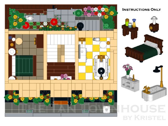 | Home - Apple Square University - Bed & Breakfast - Beloved Belle - Black Velvet - Blooming Blossoms - Blue Shores - Cast Iron Modular - Coveted Clutch - Ferris Wheel - Fountain Castle - Green Gables Stadium - Lawyer's Laundromat - Lion Heart Hotel - MedCo Clinic - Museum of Natural History - Princess Palace - Psychiatrist Office - Pumpkin Factory - Sugar & Spice - Tan Townhouse - Townhouse No.2 - Townhouse No.2b - Trilogy - Winter Barn House - Winter Cafe | The Tan TownhouseThis is a 32-stud wide modular building. This design is based on an MOC originally built in real LEGO bricks and has been rebuilt using the instructions to confirm the building steps and the parts required.