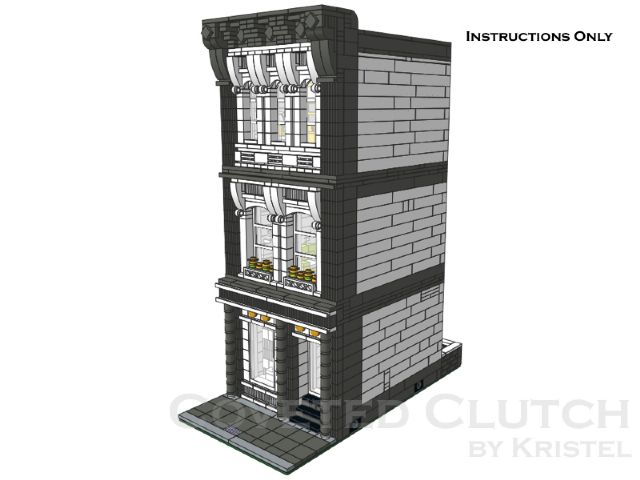 | Home - Apple Square University - Bed & Breakfast - Beloved Belle - Black Velvet - Blooming Blossoms - Blue Shores - Cast Iron Modular - Coveted Clutch - Ferris Wheel - Fountain Castle - Green Gables Stadium - Lawyer's Laundromat - Lion Heart Hotel - MedCo Clinic - Museum of Natural History - Princess Palace - Psychiatrist Office - Pumpkin Factory - Sugar & Spice - Tan Townhouse - Townhouse No.2 - Townhouse No.2b - Trilogy - Winter Barn House - Winter Cafe | Coveted ClutchExtend your town layout with the step-by-step instructions for the 2,000+ pieces, 16-stud wide modular store with upstairs apartment. It features a fully furnished interior, with a shop and storeoom on the ground floor. On the first floor is the kitchen and lounge. On the second floor is a bedroom and bathroom. This design is based on an MOC originally built in real LEGO bricks and has been rebuilt using the instructions to confirm the building steps and the parts required.