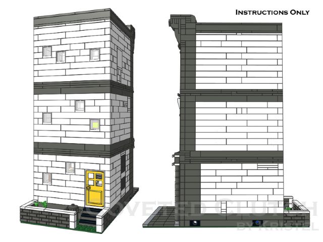 Additional pictures of the original building, including the interior, can be found on my flickr stream here. The original design has been modified slightly to account for certain parts not being available in the electronic parts library used to create the step-by-step instructions. These are primarily minifigure accessories used to decorate the inside of the building. The original model included 7 Friends handbags, 2 guitars and a portable stereo that have not been included in the instructions. | ||