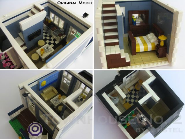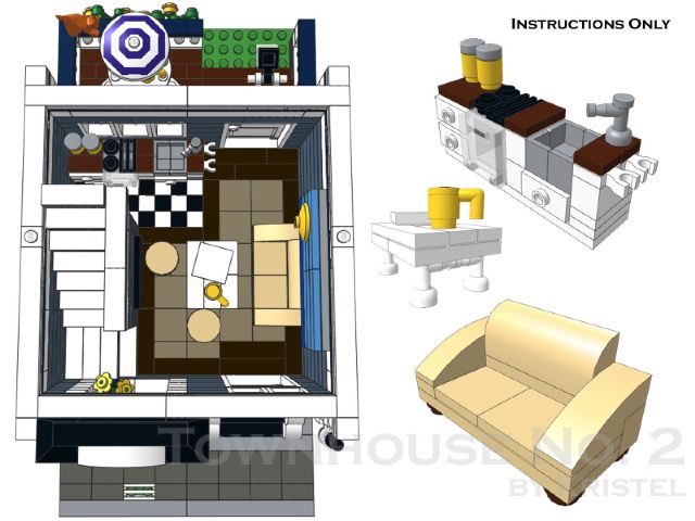 | Home - Apple Square University - Bed & Breakfast - Beloved Belle - Black Velvet - Blooming Blossoms - Blue Shores - Cast Iron Modular - Coveted Clutch - Ferris Wheel - Fountain Castle - Green Gables Stadium - Lawyer's Laundromat - Lion Heart Hotel - MedCo Clinic - Museum of Natural History - Princess Palace - Psychiatrist Office - Pumpkin Factory - Sugar & Spice - Tan Townhouse - Townhouse No.2 - Townhouse No.2b - Trilogy - Winter Barn House - Winter Cafe | Townhouse No.2 (Sand Blue)Extend your town layout with the step-by-step instructions for the 1,700+ pieces, 16-stud wide modular Townhouse No.2 in Sand Blue. It features a fully furnished interior, with a combined lounge and kitchen on the ground floor, main bedroom on the first floor and bathroom on the top floor. There's also a deck out the back and a small balcony on the top floor. This design is based on an MOC originally built in real LEGO bricks and has been rebuilt using the instructions to confirm the building steps and the parts required.