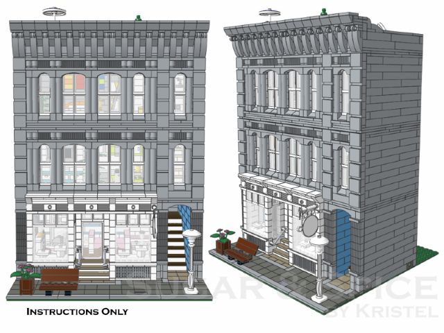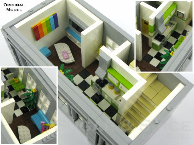 Additional pictures of the original building can be found on my flickr stream here. The model in the instructions has been amended from the original design, but changes are limited to furnishings only. The structure of the model is unchanged from the original. The minifigures shown in the images for the original model are not included in the instructions. | ||