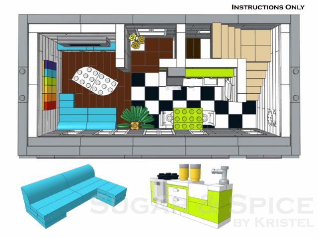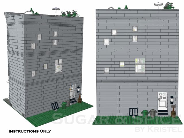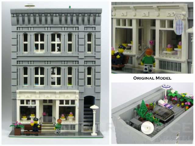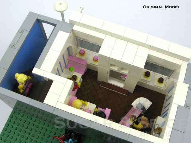 | Home - Apple Square University - Bed & Breakfast - Beloved Belle - Black Velvet - Blooming Blossoms - Blue Shores - Cast Iron Modular - Coveted Clutch - Ferris Wheel - Fountain Castle - Green Gables Stadium - Lawyer's Laundromat - Lion Heart Hotel - MedCo Clinic - Museum of Natural History - Princess Palace - Psychiatrist Office - Pumpkin Factory - Sugar & Spice - Tan Townhouse - Townhouse No.2 - Townhouse No.2b - Trilogy - Winter Barn House - Winter Cafe | Sugar & SpiceExtend your town layout with the instructions for this 3,103-piece custom modular building. It is fully furnished with a cupcake shop on the ground floor and a large open plan apartment on the the first and second floor. There's also a rooftop garden accessed through an opening sunroof. This design is based on an MOC originally built in real LEGO bricks and has been rebuilt using the instructions to confirm the building steps and the parts required.