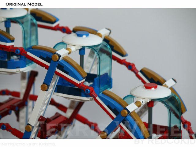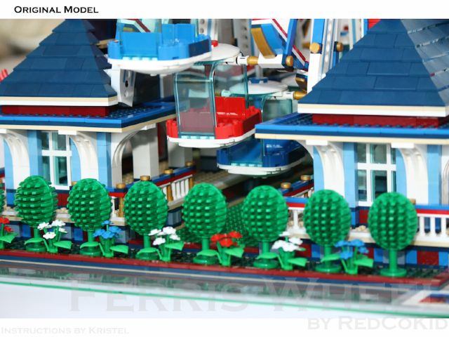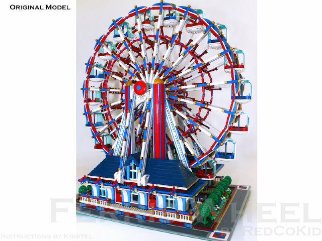 | Home - Apple Square University - Bed & Breakfast - Beloved Belle - Black Velvet - Blooming Blossoms - Blue Shores - Cast Iron Modular - Coveted Clutch - Ferris Wheel - Fountain Castle - Green Gables Stadium - Lawyer's Laundromat - Lion Heart Hotel - MedCo Clinic - Museum of Natural History - Princess Palace - Psychiatrist Office - Pumpkin Factory - Sugar & Spice - Tan Townhouse - Townhouse No.2 - Townhouse No.2b - Trilogy - Winter Barn House - Winter Cafe | Ferris WheelThe Ferris Wheel is a 8,700+ part custom model, measuring over 20 x 25 x 30 inches (51 x 64 x 76 cm). Inspired by his daughter’s love of the ferris wheel inside the Mall of America, RedCoKid designed a deluxe version of the LEGO Ferris Wheel (4957) with the style of the LEGO Grand Carousel (10196). The Ferris Wheel features a moving wheel that can be operated manually or using a Power Functions motor and battery pack. This design is based on an MOC originally built in real LEGO bricks and has been rebuilt using the instructions to confirm the building steps and the parts required.