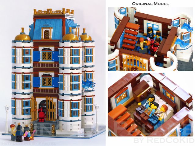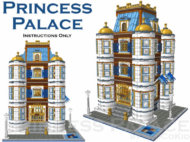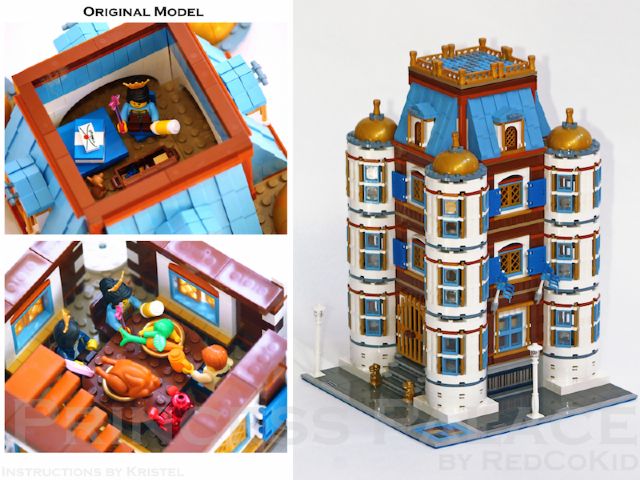 | Home - Apple Square University - Bed & Breakfast - Beloved Belle - Black Velvet - Blooming Blossoms - Blue Shores - Cast Iron Modular - Coveted Clutch - Ferris Wheel - Fountain Castle - Green Gables Stadium - Lawyer's Laundromat - Lion Heart Hotel - MedCo Clinic - Museum of Natural History - Princess Palace - Psychiatrist Office - Pumpkin Factory - Sugar & Spice - Tan Townhouse - Townhouse No.2 - Townhouse No.2b - Trilogy - Winter Barn House - Winter Cafe | Princess PalacePrincess Palace is a 2,953 piece custom modular building designed by RedCoKid. It has four fully furnished levels, with a dungeon, ballroom, dining room, bedroom and secret attic. Inspired by the Beast’s castle from the Beauty and the Beast, Princess Palace has a magical feel. This design is based on an MOC originally built in real LEGO bricks and has been rebuilt using the instructions to confirm the building steps and the parts required.