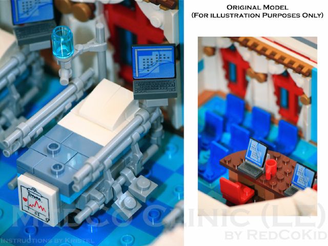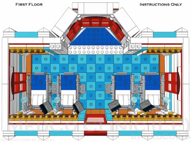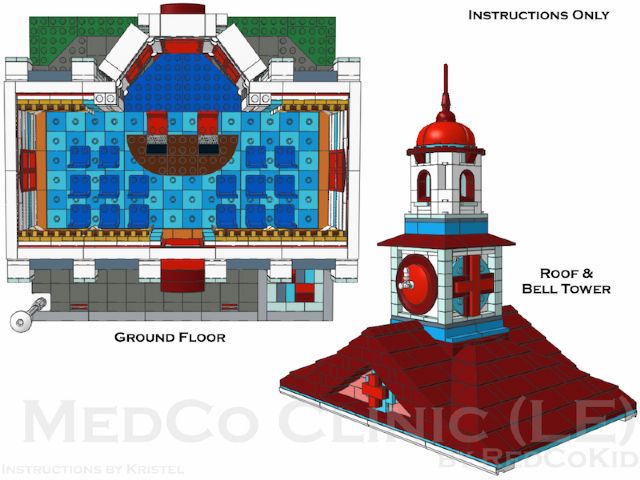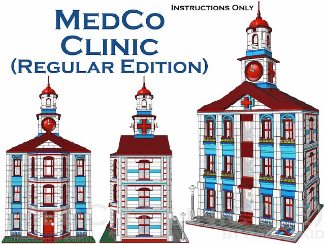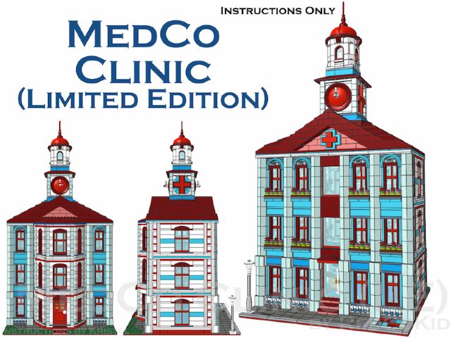 | Home - Apple Square University - Bed & Breakfast - Beloved Belle - Black Velvet - Blooming Blossoms - Blue Shores - Cast Iron Modular - Coveted Clutch - Ferris Wheel - Fountain Castle - Green Gables Stadium - Lawyer's Laundromat - Lion Heart Hotel - MedCo Clinic - Museum of Natural History - Princess Palace - Psychiatrist Office - Pumpkin Factory - Sugar & Spice - Tan Townhouse - Townhouse No.2 - Townhouse No.2b - Trilogy - Winter Barn House - Winter Cafe | MedCo ClinicMedCo Clinic is the ninth regular-scale modular building by Pete Strege (RedCoKid). Designed with reverence to classic town’s 6364 Paramedic Unit and inspired by a historic institution in Sweden, MedCo Clinic brings a 4,740-piece medical facility to your modular street. This design is based on an MOC originally built in real LEGO bricks and has been rebuilt using the instructions to confirm the building steps and the parts required.