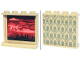 Panel 1 x 4 x 3 with Side Supports - Hollow Studs with Olive Green Wallpaper and Red, Black and Coral Jagged Landscape, Sky and Clouds on Inside Pattern (Stickers) - Set 11370