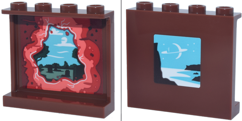 Panel 1 x 4 x 3 with Side Supports - Hollow Studs with Medium Azure Sky with White Planet, Red and Coral Portal and Graveyard Landscape on Inside Pattern (Stickers) - Set 11370