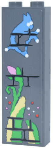 Brick 1 x 2 x 5 with Black Brick Wall, Medium Blue Creature, Bright Green and Bright Light Yellow Plant with Bright Pink Flower Bud Pattern (Sticker) - Set 76467