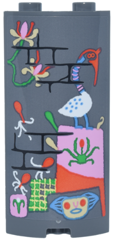 Cylinder Quarter 2 x 2 x 5 with 1 x 1 Cutout with Black Brick Wall with Paintings of Flowers and Mythical Creatures Pattern (Sticker) - Set 76467