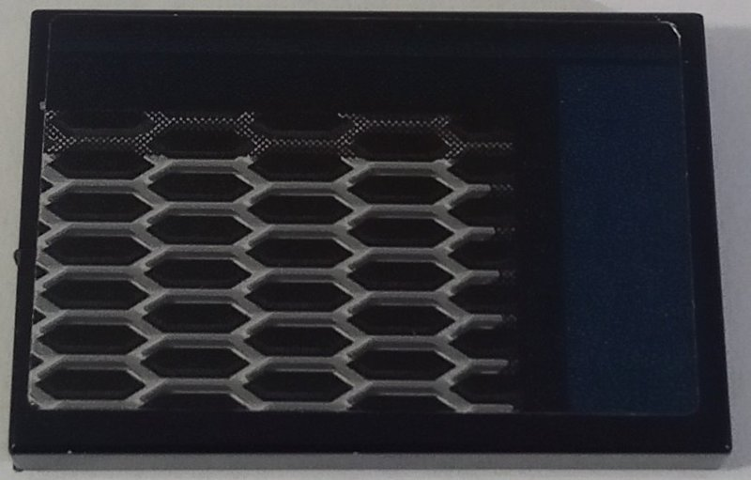 Tile 1 x 6 with Blue Console Display, White Menu Icons, and Dark Bluish Gray Border and Stripe Pattern (Sticker) - Set 42154