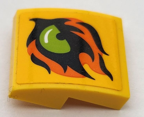 Slope, Curved 2 x 2 x 2/3 with Lime, Black and Orange Eye and Flames Pattern (Sticker) - Set 60295