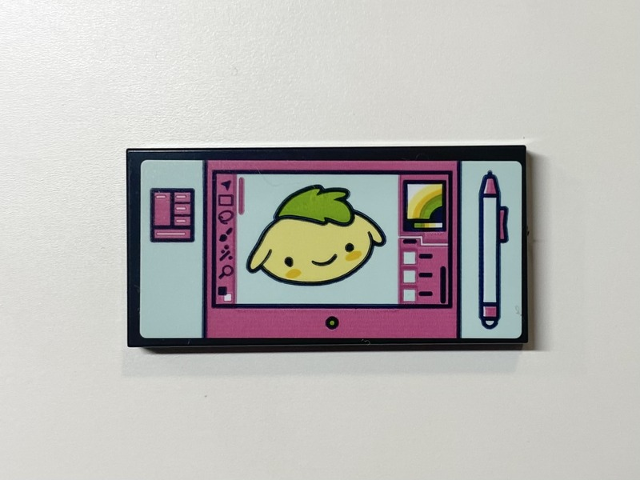 Tile 2 x 4 with Computer Monitor Paint Program with Bright Light Yellow Cartoon Lemon on Dark Pink and Light Aqua Background with Stylus Pattern (Sticker) - Set 41704