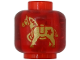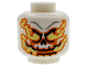 Minifigure, Head Flaming Pumpkin Skull Face with Orange and Bright Light Yellow Flames, Black Jagged Mouth and Nose, and Dark Bluish Gray Forehead Lines Pattern