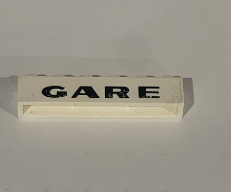 Brick 1 x 6 without Bottom Tubes with Cross Side Supports with Black 'GARE' Pattern
