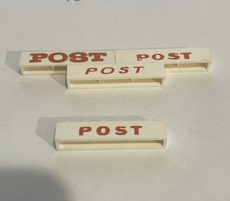 Brick 1 x 6 without Bottom Tubes with Cross Side Supports with Wide Red 'POST' Pattern