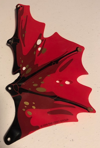 Plastic Wing Dragon with Black Spines, Dark Red Splotches, and Gold Ovals on Red Background Pattern Right
